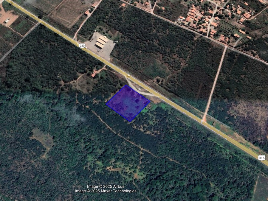 Inicia-se a descrição deste perímetro no vértice M01, de coordenadas N 9.219.955,32m e E 219.875,28m; deste segue confrontando com a propriedade de BR-316 Km 9,8, (Rod. Transamazônica), com azimute de 128°06’18,12″ por uma distância de 100,00m até o vértice M02, de coordenadas N 9.219.893,61m e E219.953,97m; deste segue confrontando com a propriedade de JOSÉ AMILTON BEZERRA, com azimute de 223°21’48,50″ por uma distância de 100,00m até o vértice M03, de coordenadas N 9.219.820,91m e E219.885,31m; deste segue confrontando com a propriedade de Herdeiros de: JOSÉ GONÇALVES LEAL, com azimute de 308°06’18,12″ por uma distância de 100,00m até o vértice M04, de coordenadas N 9.219.882,62m e E219.806,62m; deste segue confrontando com a propriedade de Herdeiros de: JOSÉ GONÇALVES LEAL, com azimute 43°21’48,50″ por uma distância de 100,00m até o vértice M01, ponto inicial da descrição deste perímetro. Todas as coordenadas aqui descritas estão georreferenciadas ao Sistema Geodésico Brasileiro, e encontram-se representadas no Sistema UTM, referenciadas ao Meridiano Central 45 tendo como o Datum o SIRGAS2000. Todos os azimutes e distâncias, área e perímetro foram calculados no plano de projeção UTM.